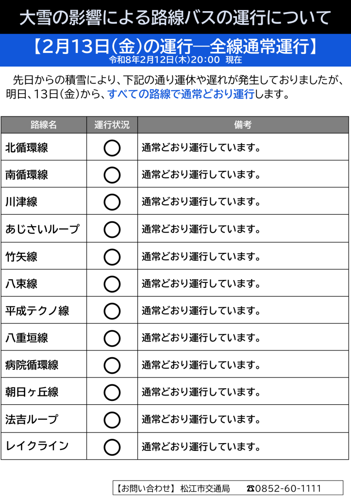 [掲載日]2026.01.23松江市営バスツアーをご愛顧いただきありがとうございます。